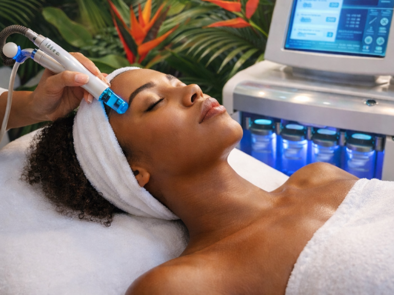 Soin de haute technologie combinant nettoyage en profondeur, exfoliation, extraction des comédons et infusion d'actifs pour une peau plus nette, lumineuse et hydratée.